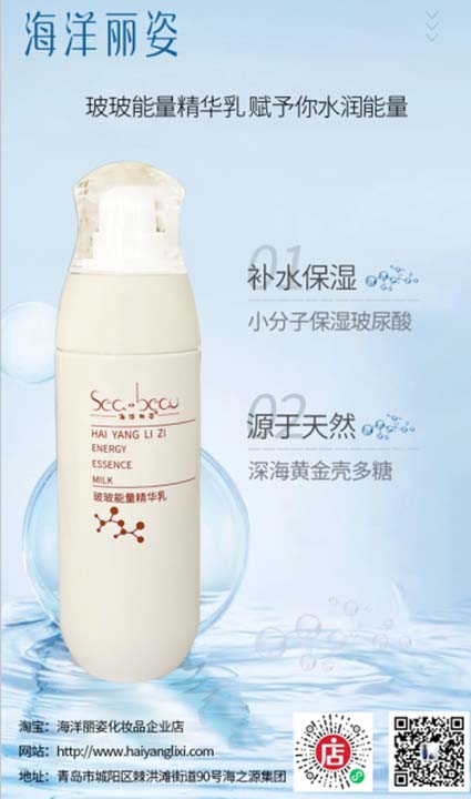 | 关键词: 海洋科技蓝色美妆护肤、 蕴含深海生物活性物质、 匿龄抗皱抗初老、 舒缓敏感肌、 软化肌肤角质、 改善沙漠干皮 |